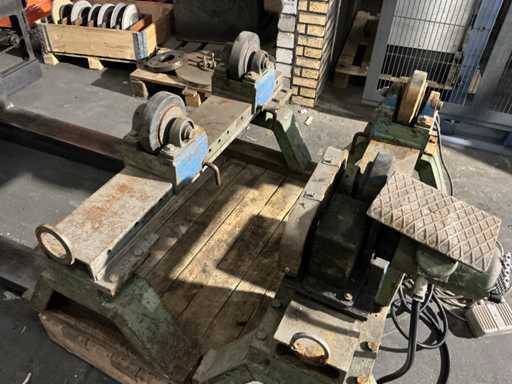 Width adjustable, roller diam 180 mm, speed adjustable, with foot operation, and walking gear.