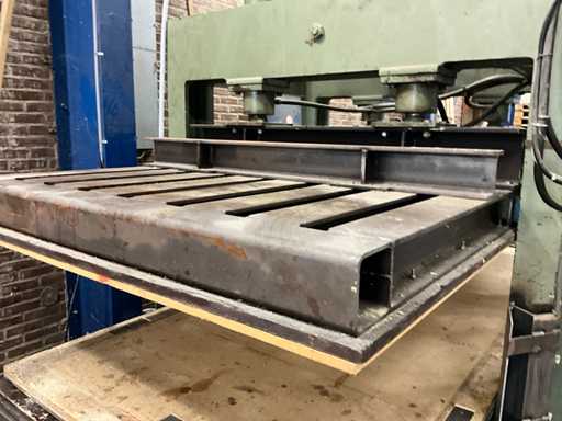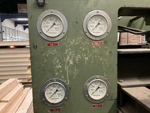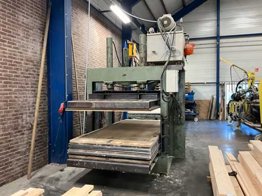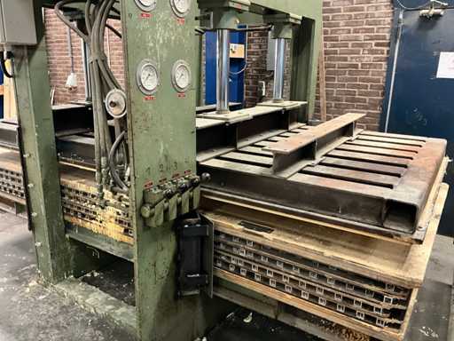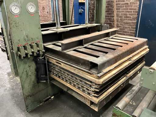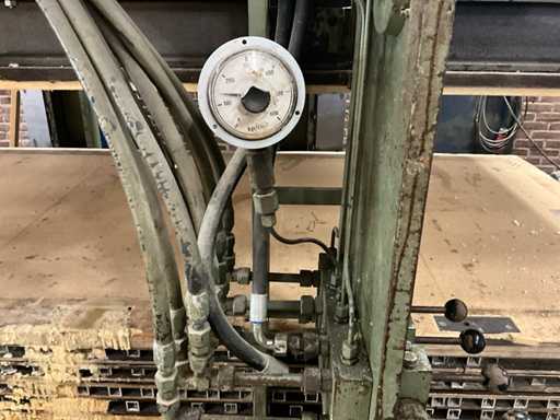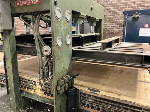 Wemhoner Hydraulic press with 2 roller conveyors