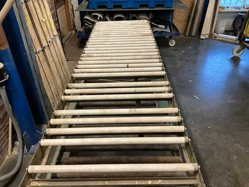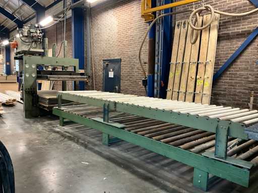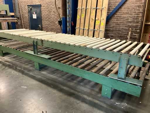 Includes 2 x roller conveyor approx. 5600mm long / 1380mm wide; 1 belt with steel rollers/ 1 belt with plastic rollers