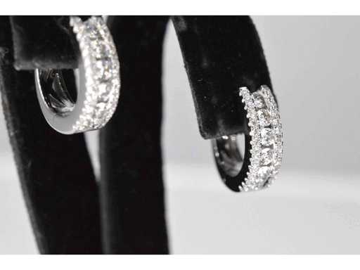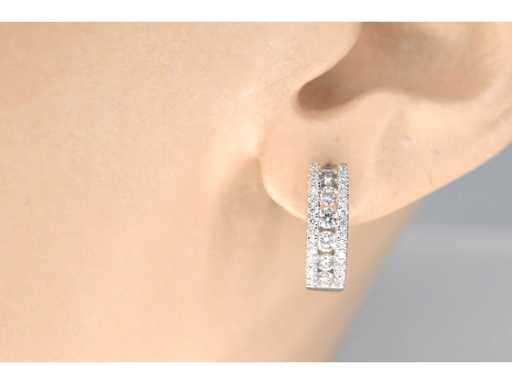 White gold earrings with three rows of diamonds