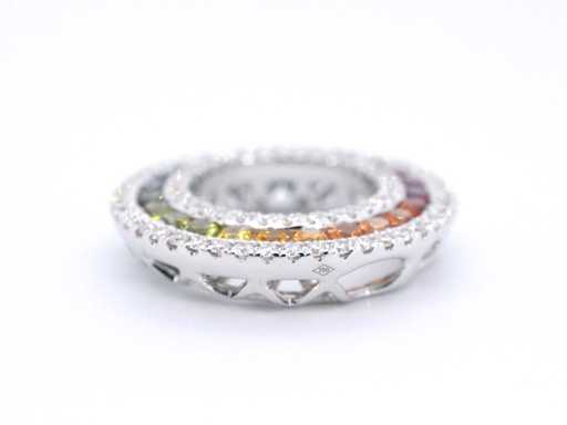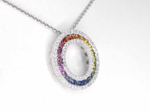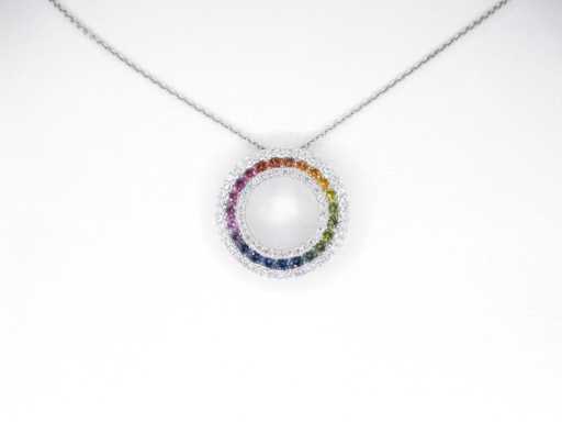 White gold pendant with multi-colour sapphires and diamonds set in a circle