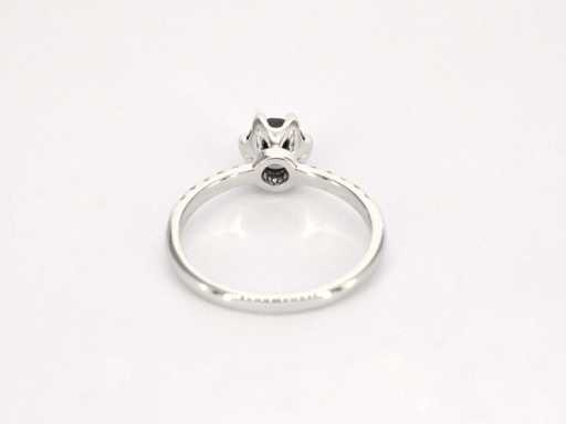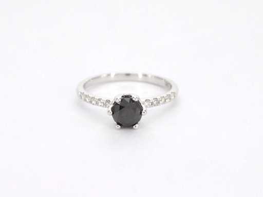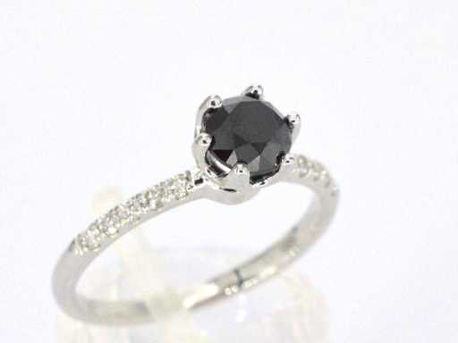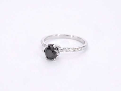 White gold ring with one brilliant cut black diamond and white diamonds