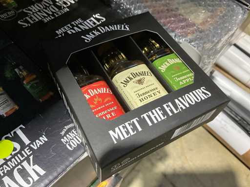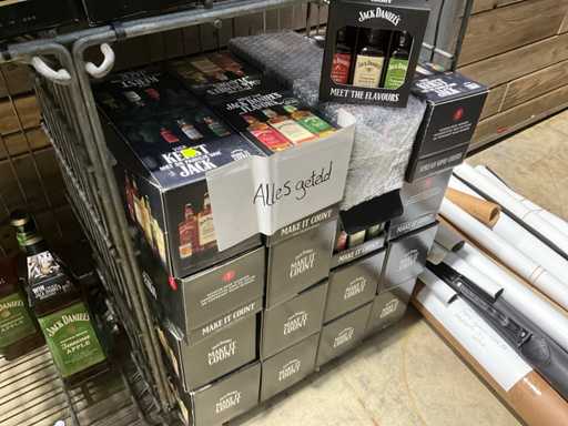 Wire baskets with contents Jack Daniels