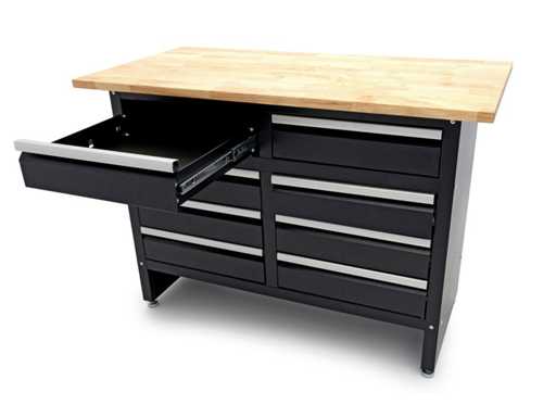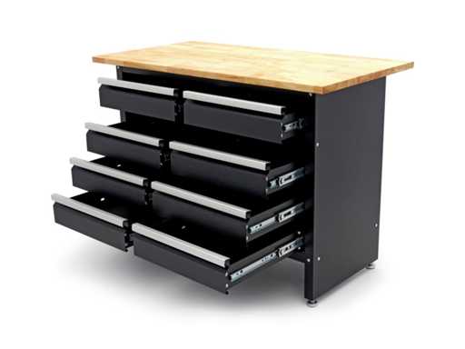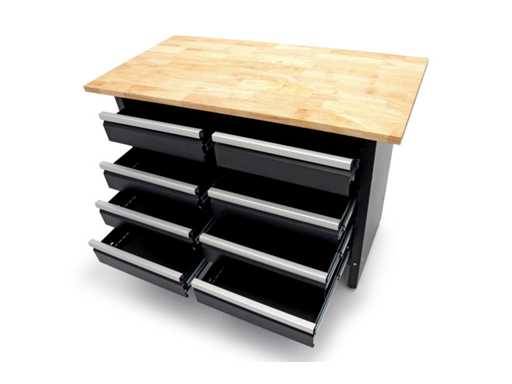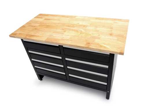 Workbench with 8 drawers and solid wood worktop