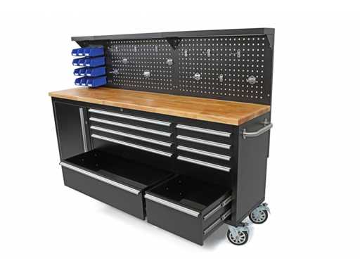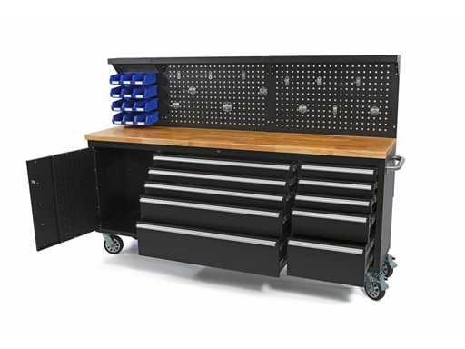 10 drawers, 12 storage bins, 13 hooks.