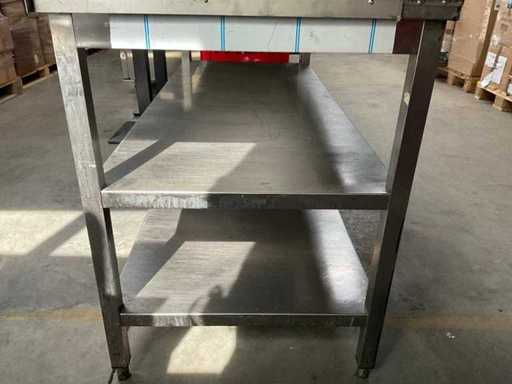 With raised edge on the left, height approx. 10cm and 2 shelves under the table