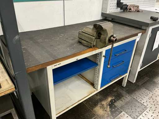 Workbench with vice and drawers