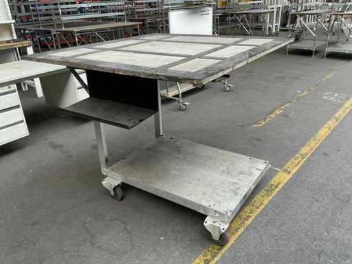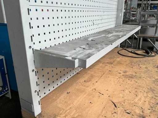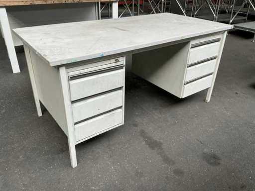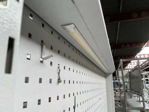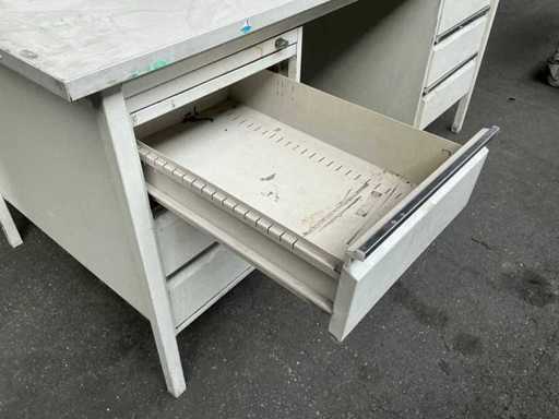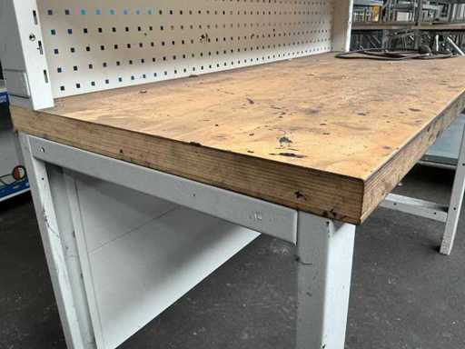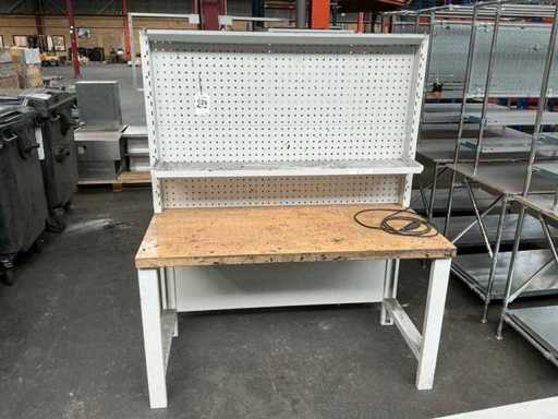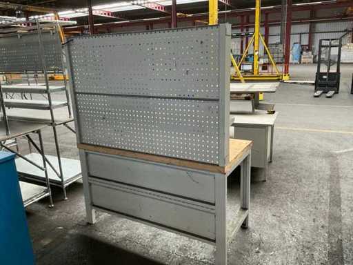 Workbench (150x70x182cm) with back panel with lighting, Mobile work table (122x130x108cm), Desk (160x80x76cm) with drawers