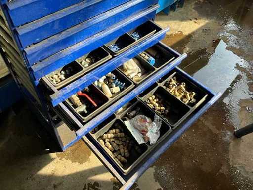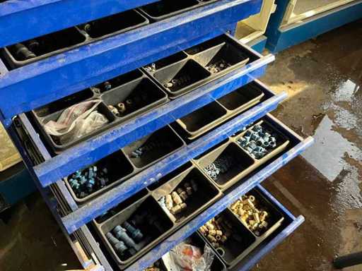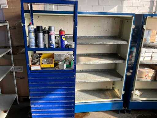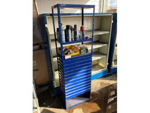 Blue shelf with drawers 540x350x1750 mm, 2x filing cabinet 1500x400x1660 mm