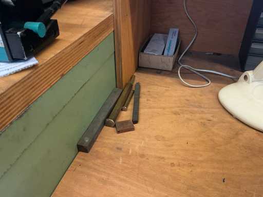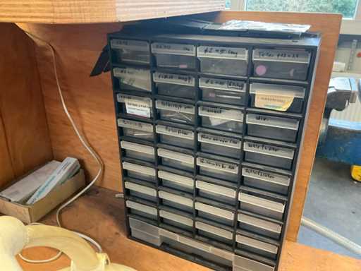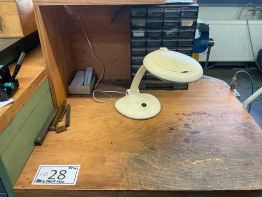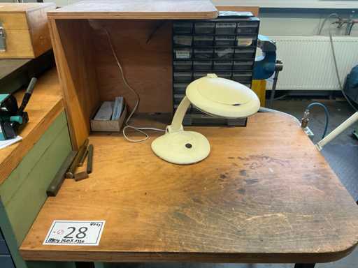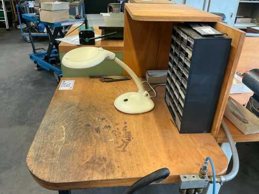 Workshop table with contents