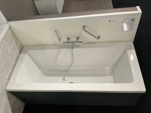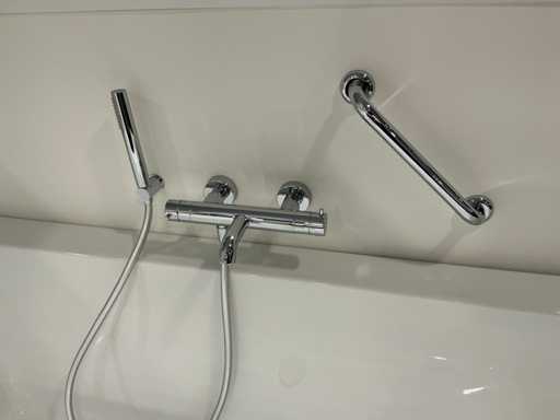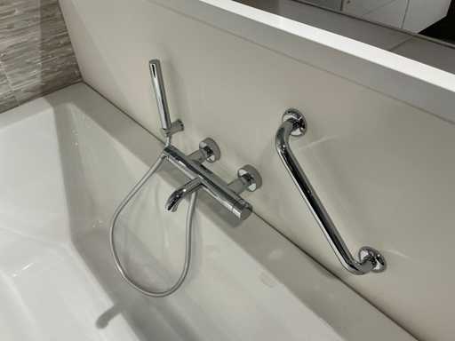 Equipped with Surface-mounted part of Christina hand shower, thermostatic tap without built-in part, Geesa bath grip.