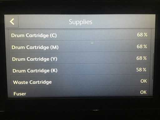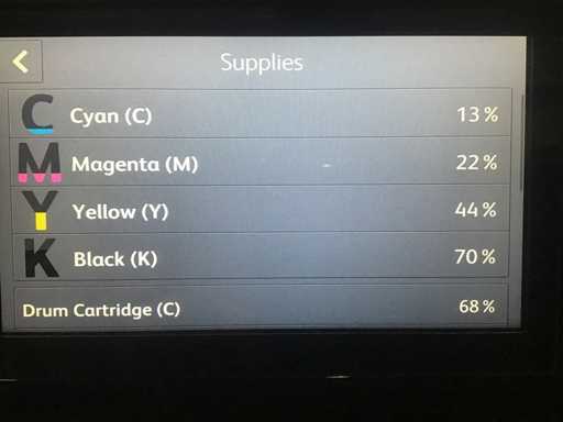 A4 multifunctional copier color, counter reading 13,068 prints total, copy pass status OK, checked by a legitimate technician! PostScript 3 is activated! Please refer to the enclosed pictures for the remaining toner & drum levels in percentage! Machine has fax with 1 line and extra paper tray included!