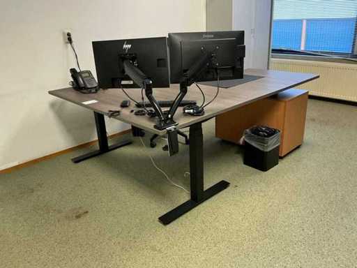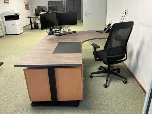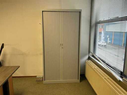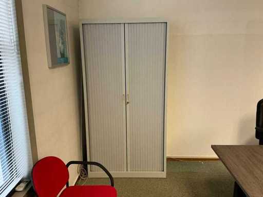 Including 2x blind door cabinet 100x45x195 cm, 4x various monitors, ; 3x office chair;
