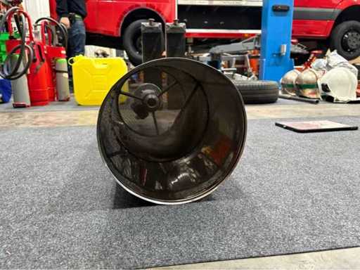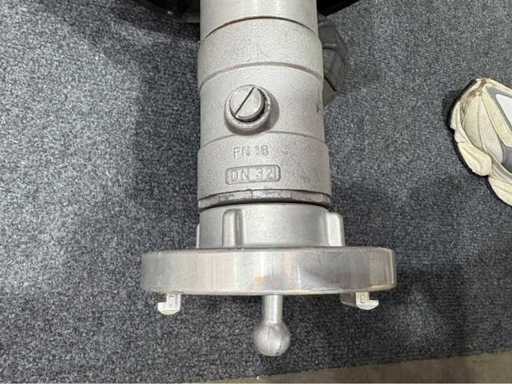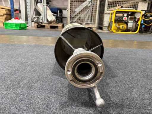 Foam nozzle according to DIN 14366, built in 1988, flow rate 400 l/min at 5 bar, foaming coefficient 60. Equipped with pressure gauge and handle. Connection: Storz coupling B