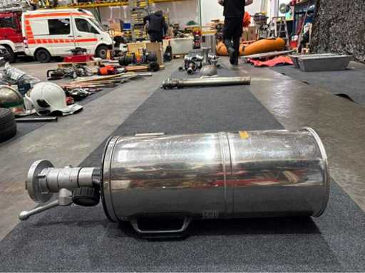 Ziegler foam spray lance type M4 for medium foam use. Large stainless steel body with integrated air intake, Storz clutch and pressure gauge. Condition of use with slight scratches, technically fully functional according to customer specifications. Ideal for factory firefighters or medium-flow foam applications.