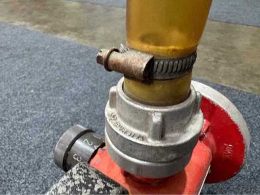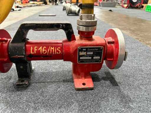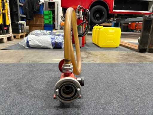 Foam nozzle according to DIN 14366, built in 1988, flow rate 400 l/min at 5 bar, foaming coefficient 60. Equipped with pressure gauge and handle. Connection: Storz coupling B