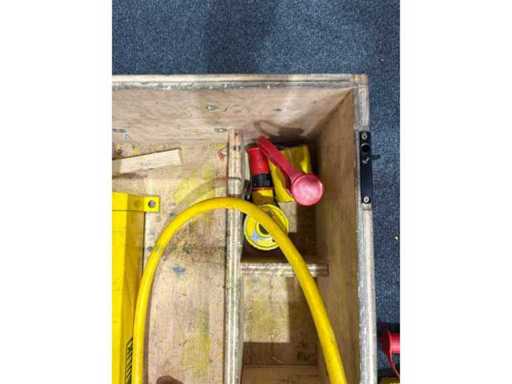 Electrically operated foam transfer pump Ziegler SKP 2, year of manufacture incompletely legible (presumably 1986–89). Flow rate: 300 l/min at 15 mWS, rated speed: 2880 rpm. Equipped with power connection (CEE), VDO pressure gauge, multiple coupling output (ZIEGLER), as well as ground cable set, test clamps, tools and fittings. Everything is mounted on aluminum frames.