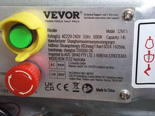 Robot culinaire VEVOR SZM 15 avec accessoires, capacité 15 litres, 220 V / 50 Hz