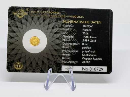 1/200 OZ 999 Fine Gold Kookaburra 2016 Rwanda
