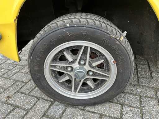 Isuzu Bellett GT 1971 (PR95) – Seule 1800GT aux Pays-Bas | Rare classique japonais aux racines sportives, Version originale « 1800GT » (PR95) de 1971, Equipement : Moteur 4 cylindres SACT de 1817cc - 115 ch, Jantes yokohama Almex en aluminium d’origine, Stocké pendant des années, Cette Isuzu Bellett GT de 1971 est une trouvaille unique sur le marché européen - et selon toute vraisemblance la seule 1800GT aux Pays-Bas. En tant que première voiture produite au Japon à porter la désignation « GT » (Gran Turismo), ce modèle allie des performances sportives à un design élégant et compact. Il s’agit de la puissante 1800GT (PR95), équipée d’un moteur SOHC de 1817 cm³ refroidi à l’eau qui délivre 115 ch. La carrosserie est jaune, la couleur d’origine est le bronze et est dans un état raisonnable, Veuillez noter que cette voiture a été stockée pendant de nombreuses années et n’est actuellement pas utilisable (le moteur est desserré). Une reconstruction technique (remise en service) est nécessaire.