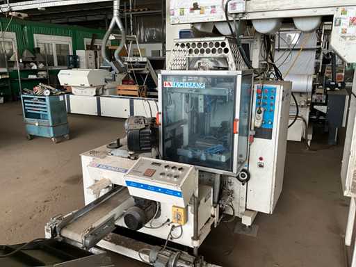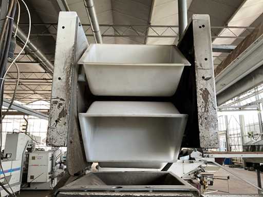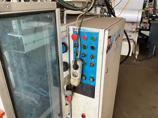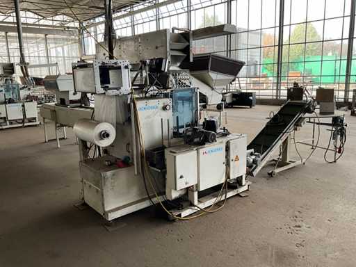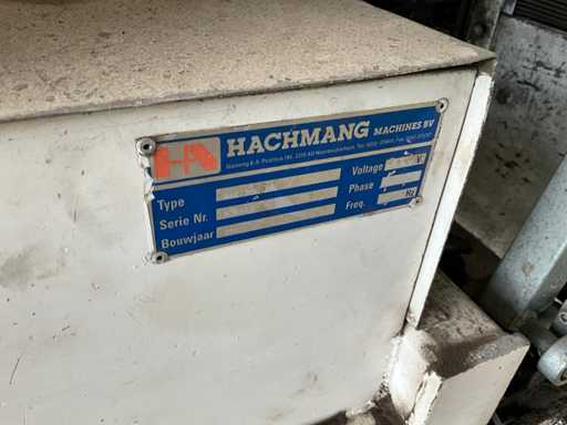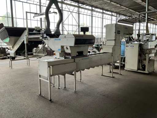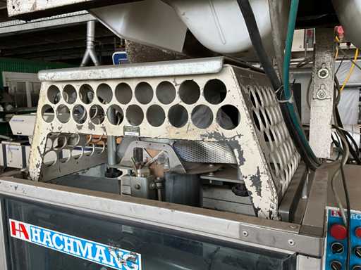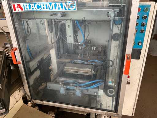 équipé d’une imprimante vidéojet, d’une barre de soudure, d’une largeur de soudure de 250 mm, d’une ligne complète composée d’une trémie, d’un élévateur de levage, d’une bande de lecture à fréquence contrôlée avec aspiration, d’une machine de comptage à 12 canaux Hachmang HA 8125 MC 3DE, d’une année de construction 1993, d’un élévateur de levage Hachmang BEV5 de 1990, d’un élévateur à cartes Hachmang HAK200NF de 1983, Veuillez noter ! Le terrain doit être démantelé