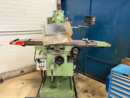 La machine est équipée d’un affichage numérique FAGOR 3 axes, qui facilite un travail précis et une récupération rapide des positions. La puissance totale est de 7,06 kW, ce qui signifie que même les opérations de broyage lourdes peuvent être réalisées de manière fiable. Une pompe à liquide de refroidissement est disponible.