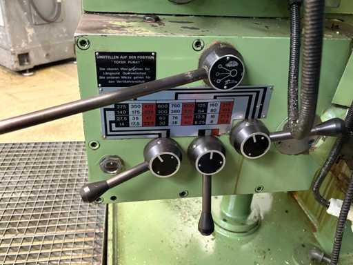 La machine est entièrement fonctionnelle et a été utilisée en atelier jusqu’à la fin. La mécanique, les avances et la broche fonctionnent sans problème ; Tous les niveaux de transmission peuvent être ajustés proprement. Visuellement, il est dans un état bien entretenu et adapté à son âge, avec de légers signes d’usure sur la peinture et les commandes.