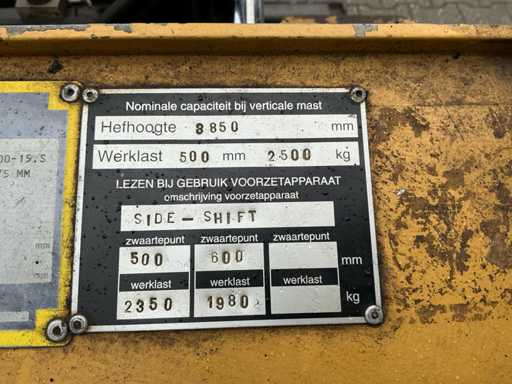 Equipé de : mât duplex, phares de travail pour l’arrière, fourches de 1300mm, déplacement latéral, Veuillez noter ! L’essieu avant doit être vérifié fait du bruit à grande vitesse
