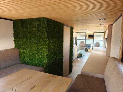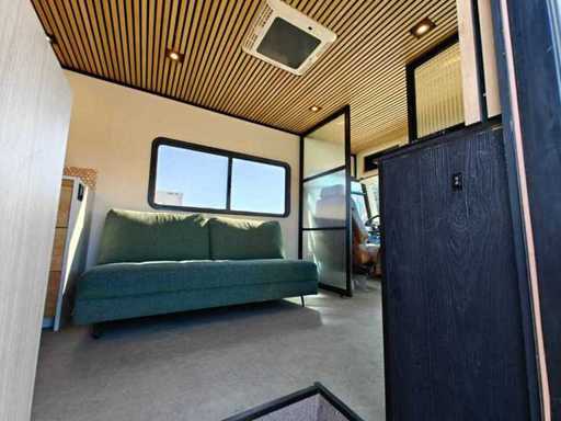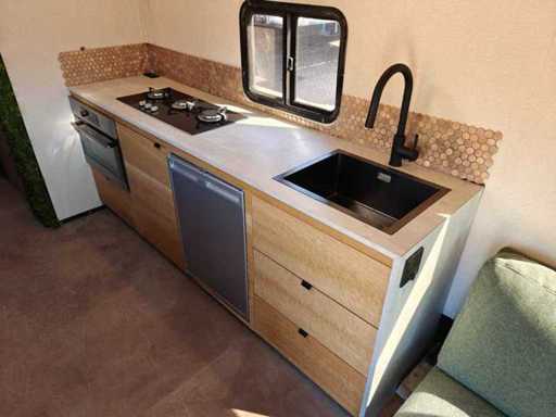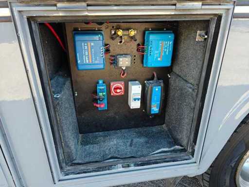 Équipé de suspension pneumatique, climatisation « Dometic », chauffage « Truma », éclairage intérieur LED, fenêtres avec moustiquaires, espace salon, marche électrique pliante, diverses prises, TV, réfrigérateur, micro-ondes combinés, poêle à 3 brûleurs, évier avec robinet mélangeur, toilettes, douche avec robinet mélangeur, évier, ventilateurs de toit, onduleur d’énergie « Victron », batteries de stockage, contrôleur solaire intelligent, connexion à quai électrique, générateur, réservoir de gaz, jambes hydrauliques de support, boîtes à outils, caméra de recul et barre de remorquage