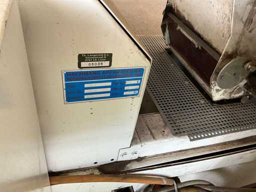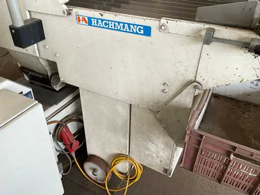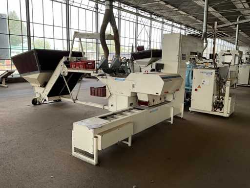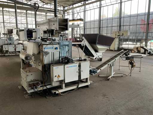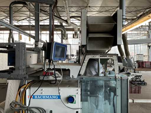 équipé d’une imprimante vidéojet, d’une barre de soudure, d’une largeur de soudure de 250 mm, d’une ligne complète composée d’une trémie, d’un élévateur de levage, d’une bande de lecture à fréquence contrôlée avec aspiration, d’une machine de comptage de canaux Hachmang HA 8225 MC, d’une machine de comptage de canaux Hachmang HA 8225, d’un élévateur de levage Hachmang BEV5 de 1991, d’un élévateur de cartes Hachmang HAK200NF de 1990, Veuillez noter ! Le terrain doit être démantelé