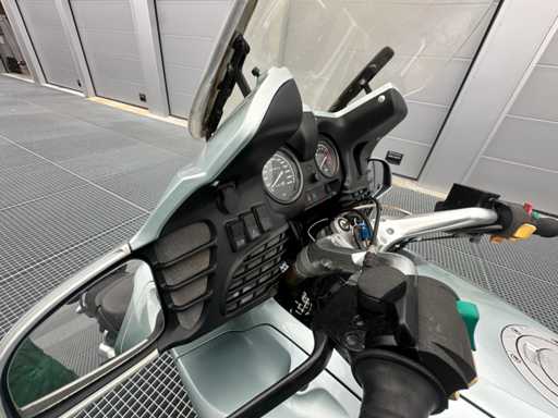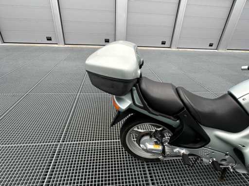 BMW R1100RT, construite en 1997, avec un kilométrage de 95 974 km. La moto est de couleur vert clair et équipée d’un top-case de la même couleur. Équipé d’un pare-brise réglable électriquement et d’une batterie neuve. Le moteur peut être livré avec des documents d’exportation et une facture de l’UE.