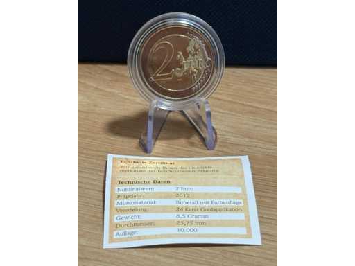 2 Euro 2012 Belgique 10 ans Euro avec application or et couleur