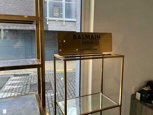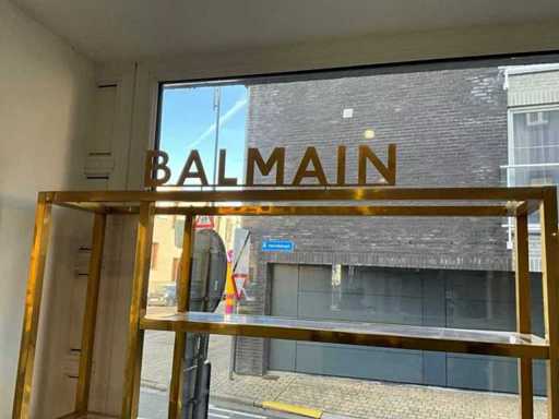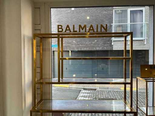 Logos BALMAIN amovible. Dimensions armoire 1 : Hauteur : 210 cm, Longueur : 120 cm, Largeur : 45 cm, 38 cm, 25,5 cm Dimensions armoire 2 : Hauteur : 155 cm, Longueur : 46 cm, Largeur : 25 cm