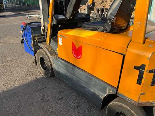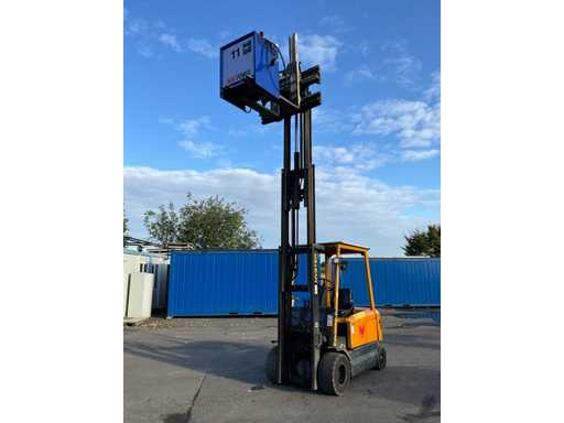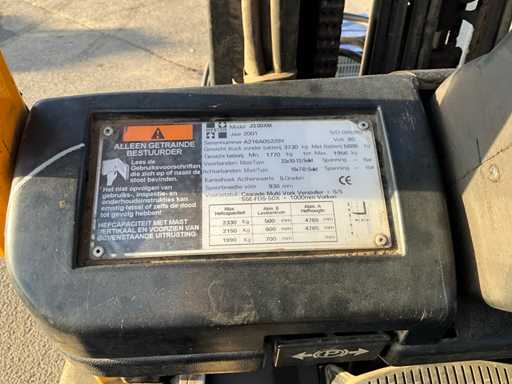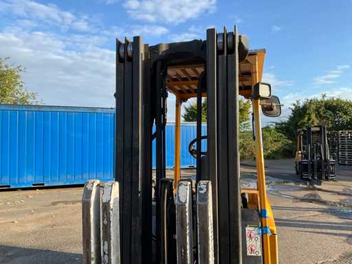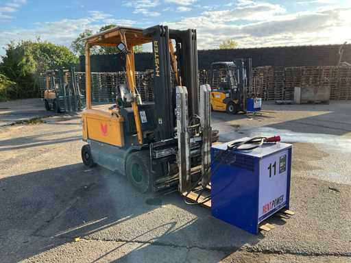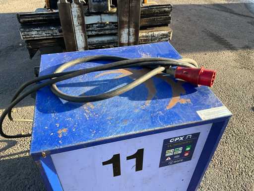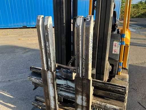 équipé d’un chargeur de batterie, d’un chariot Cascada, de doubles fourches, d’un positionneur de fourches doubles