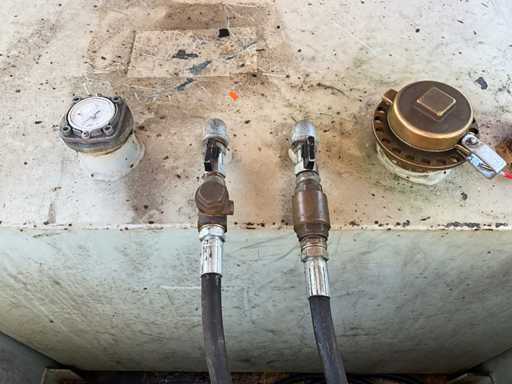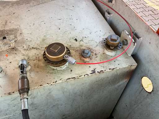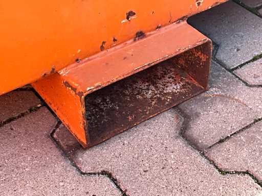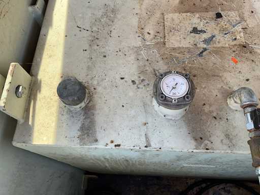 fentes de fourche pour chariot élévateur ; indicateur de niveau de remplissage ; Serpents; couvercle à charnière ; 2x capuchon d’étanchéité ; lever les yeux ; état de travail non vérifié ;