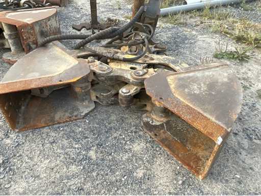 Grappin coquille hydraulique Kinshofer, largeur 32 cm, équipé d’une attache CW30. Outil idéal pour le creusement et le nettoyage de tranchées étroites (canalisations, câblage, fondations), ainsi que pour la manutention de matériaux en espace réduit. Largeur coquilles : 32 cm Attache : CW30 Marque : Kinshofer, référence dans les équipements hydrauliques Flexibles hydrauliques et rotateur inclus Remarque : Outil robuste et complet, prêt à être monté sur pelle équipée de CW30.