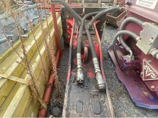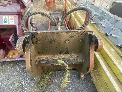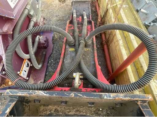 Brise-roche hydraulique JAB avec platine d’attache rapide CW30 Marque : JAB Type : Brise-roche hydraulique (marteau hydraulique) Attache : Platine CW30 Équipé de flexibles hydrauliques avec raccords rapides Outil monté : pointe (bêche acier) Plaque signalétique présente (modèle et caractéristiques techniques indiqués)