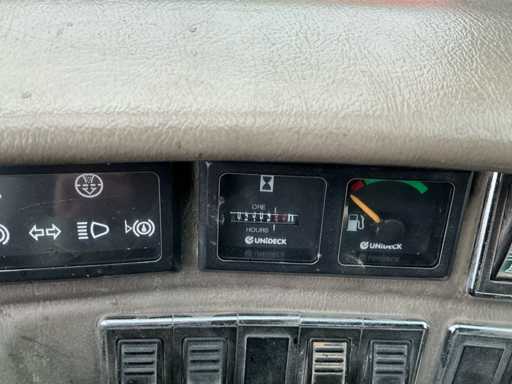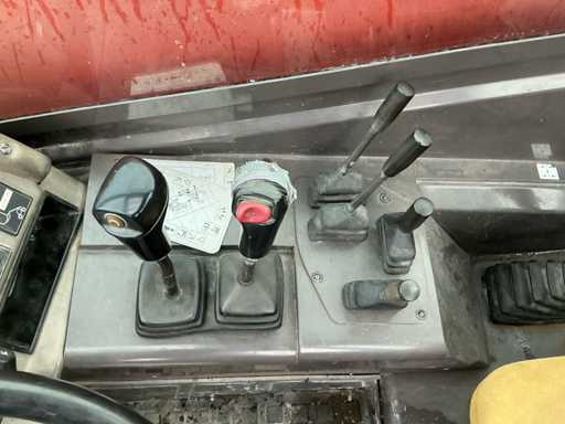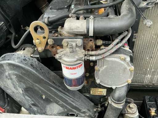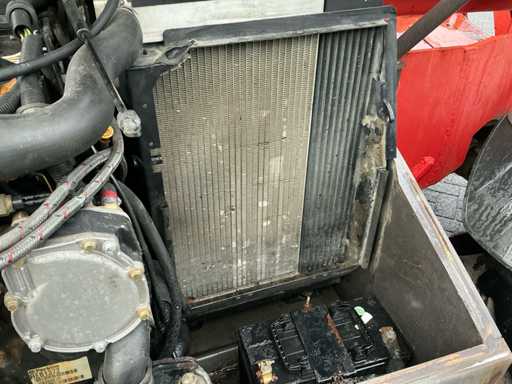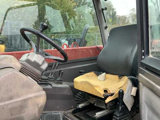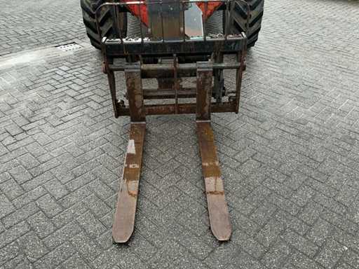 Equipé de : stabilisateurs, tablier porte-fourches, éclairage, essuie-glaces avant et arrière, filtre cyclonique, portée horizontale maximale