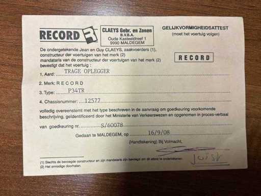 2008 Record P34 TR Remorque à benne basculante