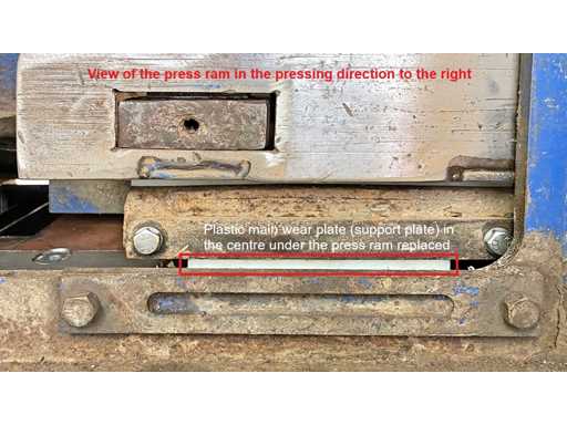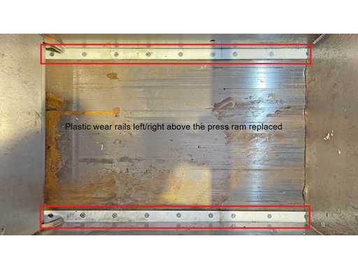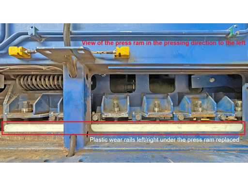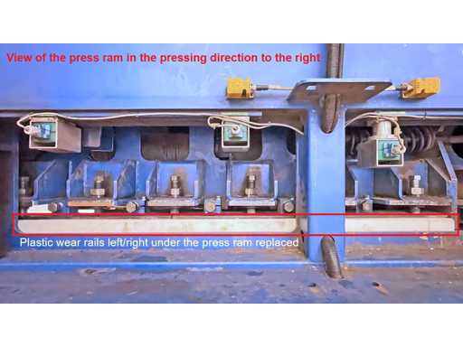 • Démontage du vérin de presse, démontage en pièces individuelles, remise en état de la mécanique, remplacement des plaques et rails d’usure en plastique suivants :