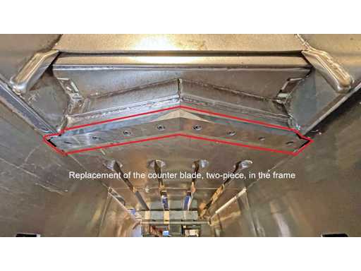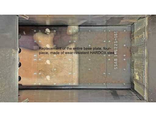 • Remplacement de la plaque de base entière, en quatre parties, en acier résistant à l’usure