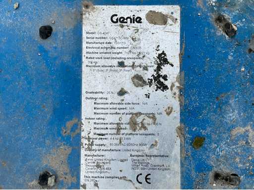 Hauteur du plancher de la plate-forme 11700 mm ; taille de la plate-forme extensible env. 3150x1150 mm ; chargeur de batterie interne 230 Volts ; contrôle de la cage ; hauteur de transport 1950 mm ; état de fonctionnement ;