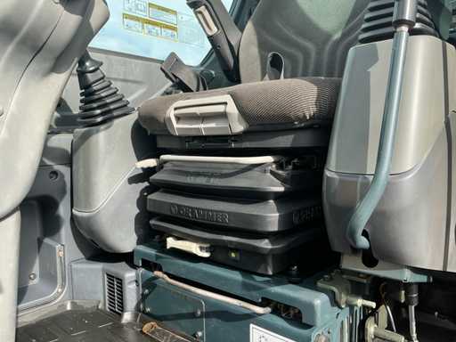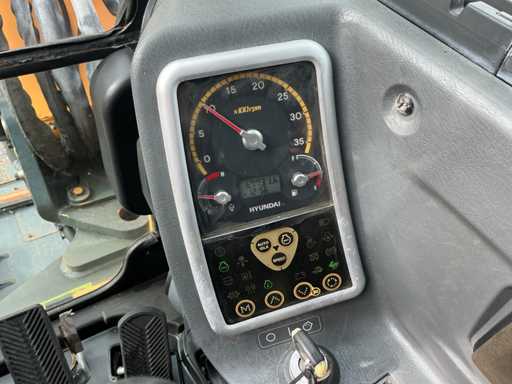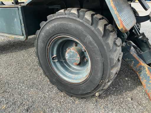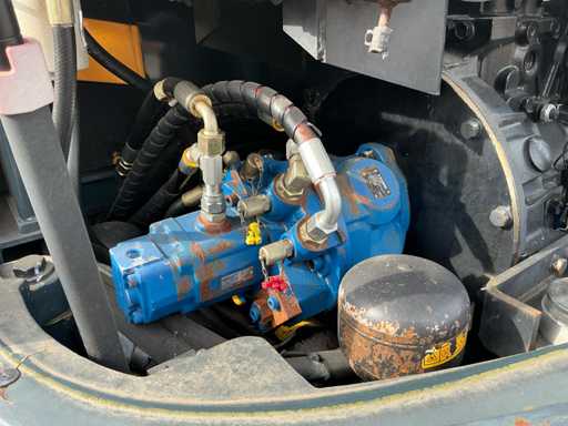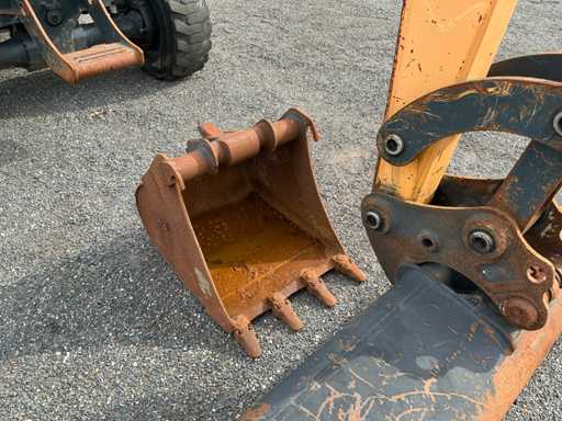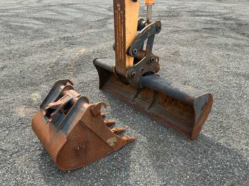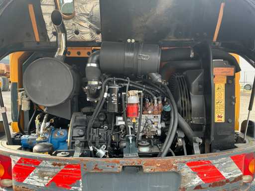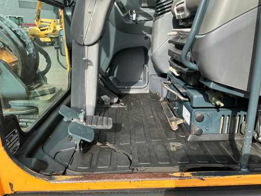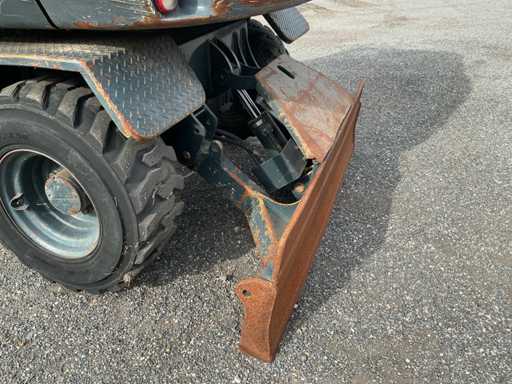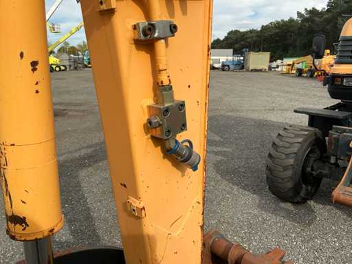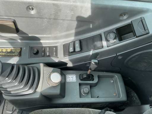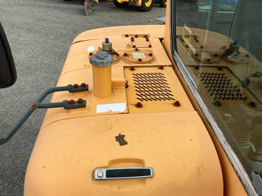 Equipé de : attache rapide mécanique, godet 1500mm, godet à dents 570mm, fonction auxiliaire le long de la flèche, phares de travail, stabilisateur d’essieu, flèche pivotante, rétroviseurs, lame de remblayage, coffre de rangement, prise 12v dans la cabine, toit panoramique, pare-soleil, pare-brise rabattable, vitres coulissantes, radio, essuie-glaces, climatisation, siège à suspension mécanique Grammer.