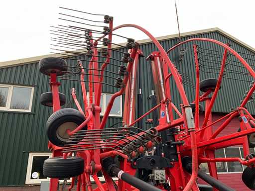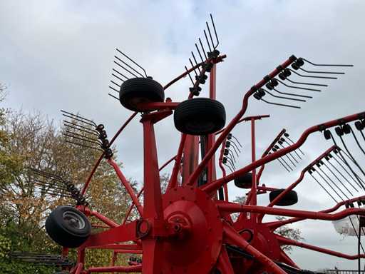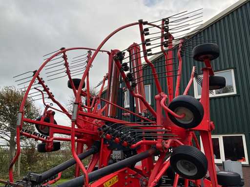 Machine transportée/tractée, équipée d’un réglage hydraulique de la largeur de travail de 7,7 à 8,6 mtr, rotor manœuvrable d’un côté, autovireur, 6 roues par rotor,