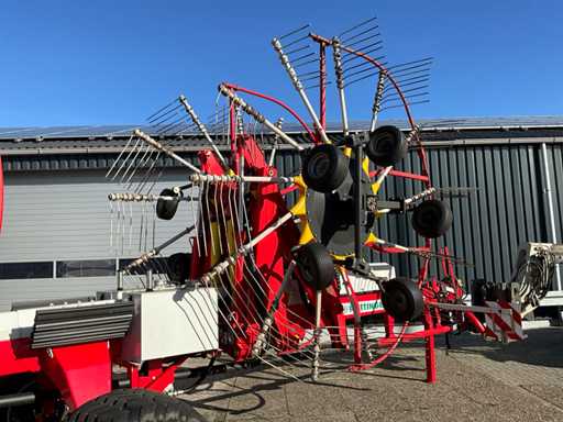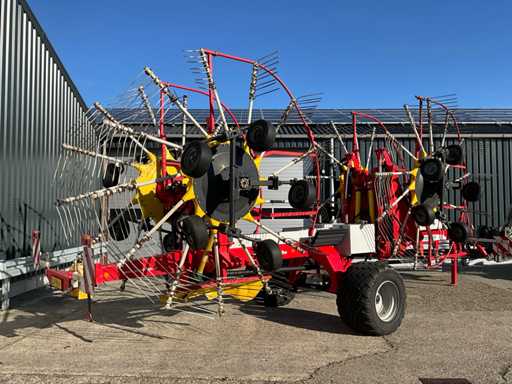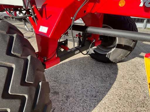 Équipé de 4 rotors, 13 bras, 8 doigts chacun ; 5 roues de roulement par rotor ; taille des pneus 620/40R22.5 Pneus « Alliance » ; terminal isobus ; freins hydrauliques ; rotors de réglage hydraulique de la hauteur ; couche moyenne ;