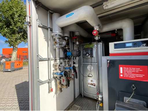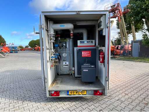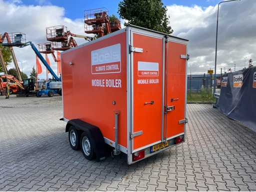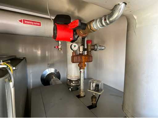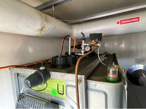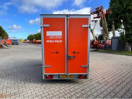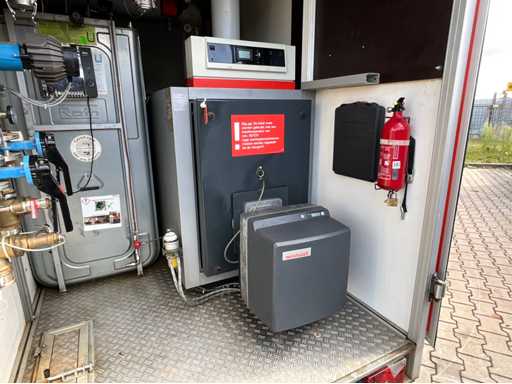 Chaudière Viessmann Vitoplex 200 type MH150F 150 kW ; brûleur à fioul Weishaupt TYPE WL30Z-C 4LN ; réservoir de carburant Roth capacité 1500 litres ; diverses pompes de circulation ; tuyauterie et vannes d’arrêt ; éclairage intégré ; Fusibles; Connexion électrique 230 volts ; tuyau d’échappement des gaz de combustion ; double porte arrière ; porte latérale ; 4x pied de support ; cadre en acier galvanisé ; roue jockey ; frein à inertie ; Documents d’immatriculation néerlandais ; sans certificat de conformité ;