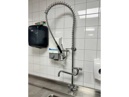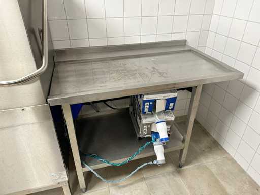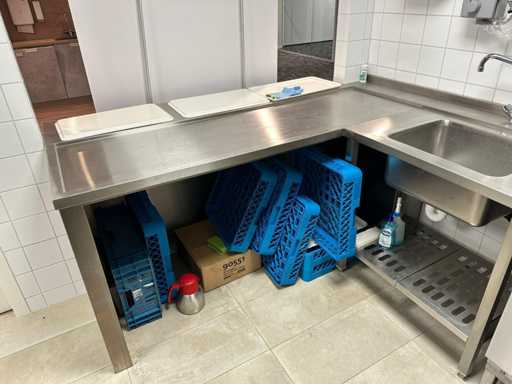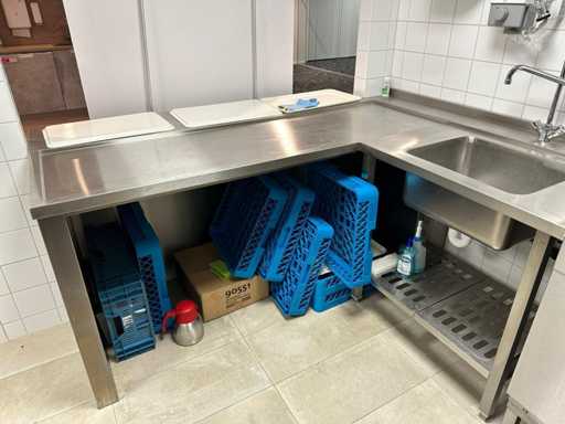 Table d’entrée avec coin de robinet modèle 150x120x75cm, table de sortie 120x75cm.