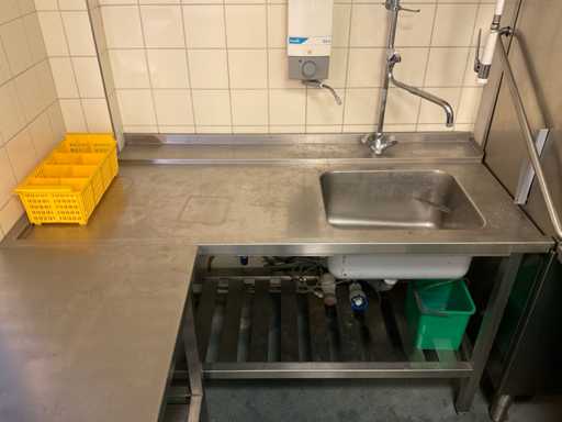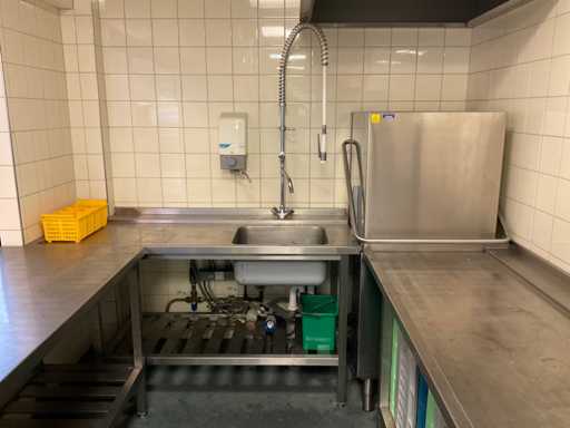 Équipé d’une douche de pré-rinçage, d’une hotte aspirante et de paniers.