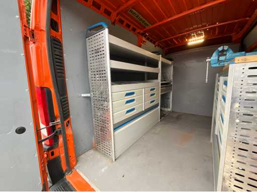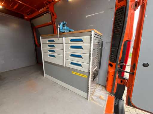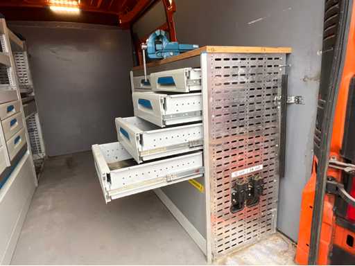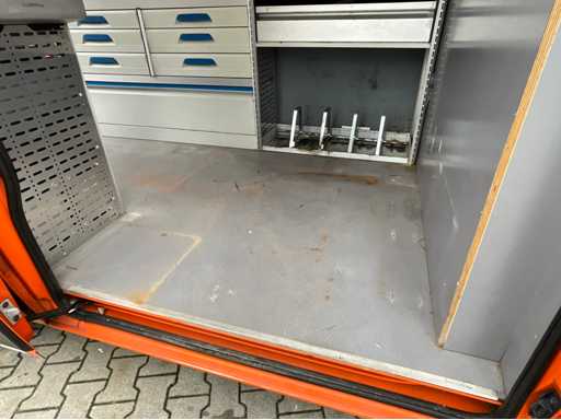 caméra arrière ; vitres électriques ; climatisation; navigation; double porte de chargement arrière ; espace de chargement de la porte coulissante sur le côté droit ; Aménagement de fourgon Sortimo à gauche et à droite équipé de divers tiroirs ; établi avec étau ; Chargeur; barre de remorquage ; le lettrage sera enlevé ; Documents d’immatriculation néerlandais ; sans certificat de conformité ;