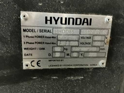 2018 Hyundai HHDD85 silencieux Groupe électrogène